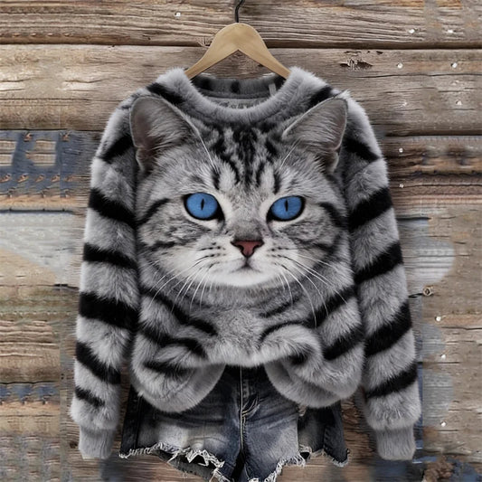 Cardydony American Shorthair Tabby Cat & Pattern Cozy Plush Sweatshirt
