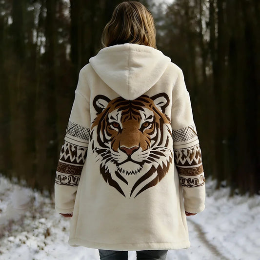 Cardydnoy Women's Viking Celtic Tiger Pattern Comfortable Hooded Dress