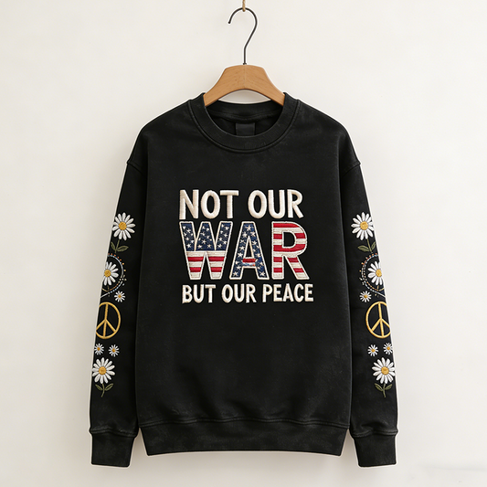 Cardydony About No War Slogan Pattern Design And Small Daisy Pattern Casual Round Neck Sweatshirt