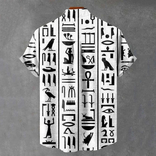 Cardydony Abstract Egyptian Art Totem Vintage Figures Geometric Print Casual Shirt