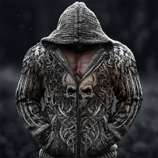 Cardydont Men's Viking Skull With Wings Celtic Cozy Hooded Cardigan