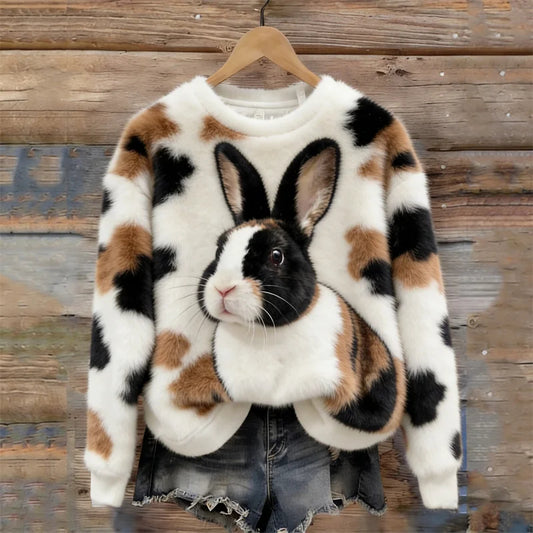 Cardydony Calico Bunny & Pattern Cozy Plush Sweatshirt