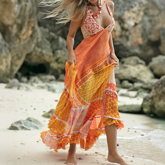 Cardydony Boho Paisley Patchwork Patterns Maxi Suspender Dress