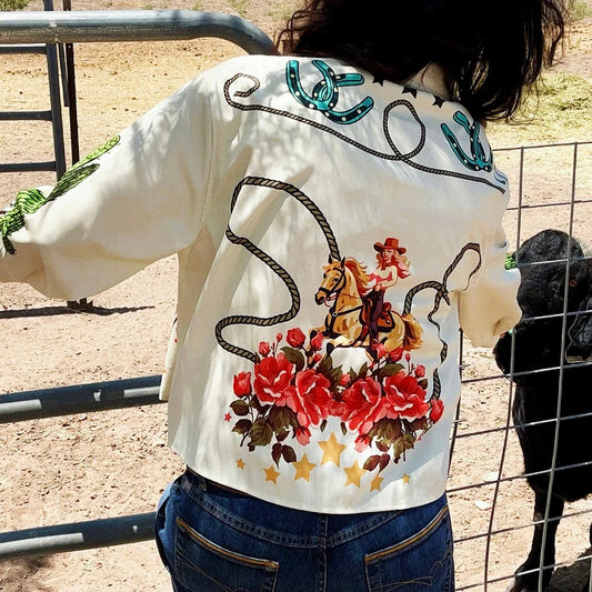 Cardydony Casual Cactus Western Style Cowgirl Rodeo Long Sleeve Pocket Shirt