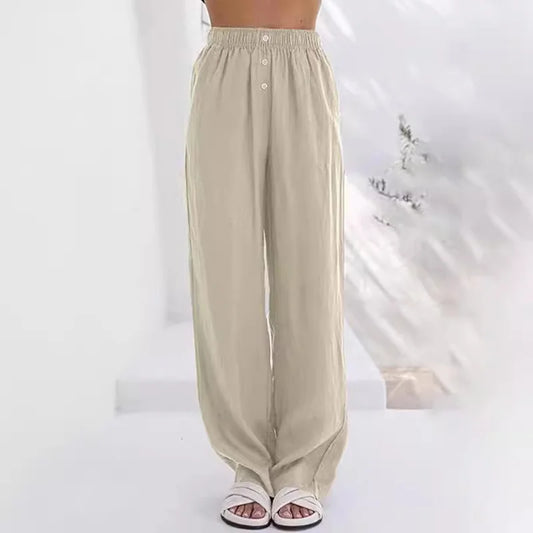 Cardydony Casual Solid Color Linen Loose Trousers