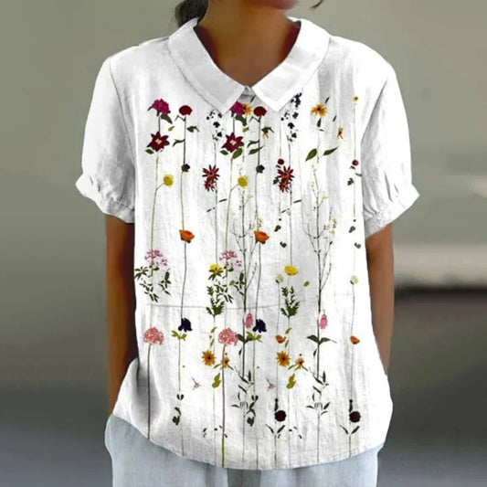 Cardydony Casual Floral Print Cotton And Linen Short Sleeve Tops
