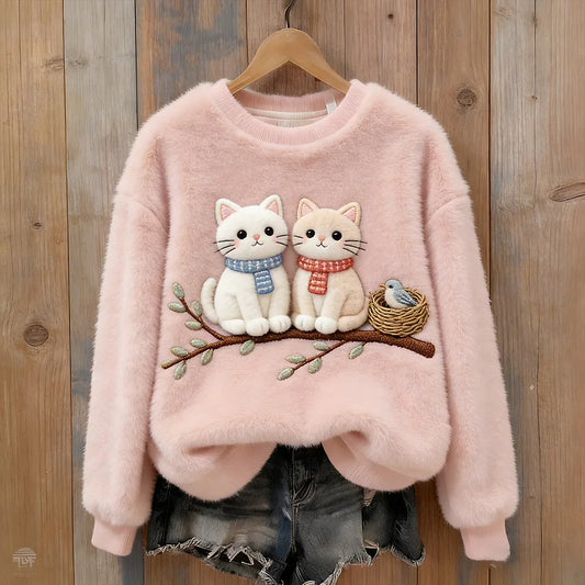 Cardydony Cat And Bird On The Tree Crew Neck Sweatshirt