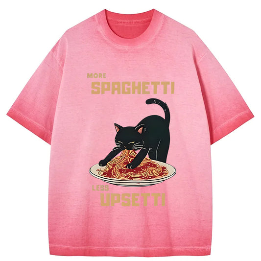 Cardydony Cat Eating Spaghetti Funny Gradient Washed T-shirt