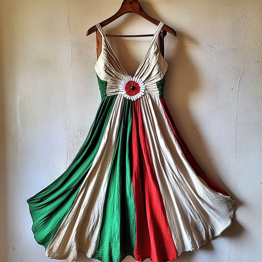 Cardydony Women's Vintage Italian Flag And Daisy Short Dress