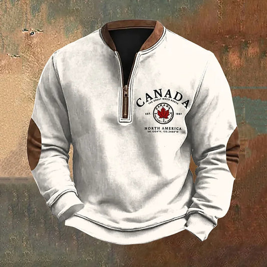 CardydonyMen's Canada Print Zip Collar Sweatshirt