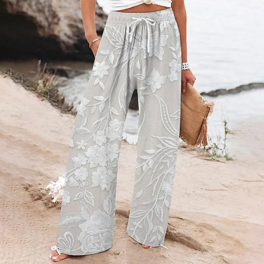 Carydony Women's Casual Retro Embroidered Floral Print Pants
