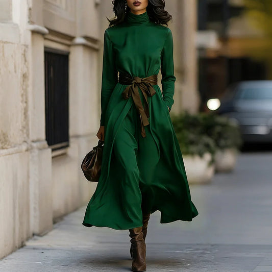 Cardydony Classy Simple Turtleneck Pleated Maxi Dress