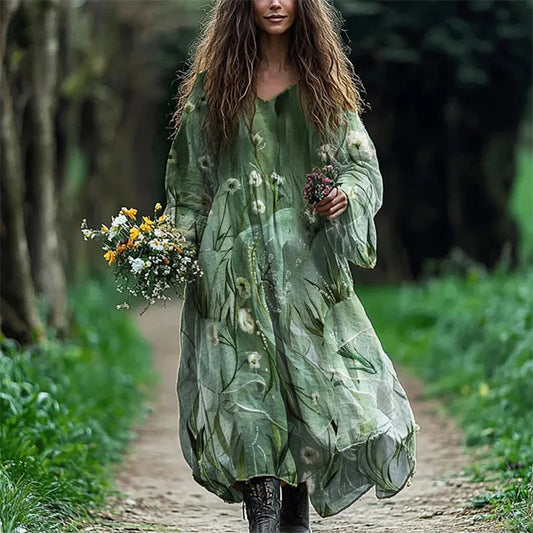 Cardydony Classy Elf Floral Linen Blend Flowy Maxi Dress