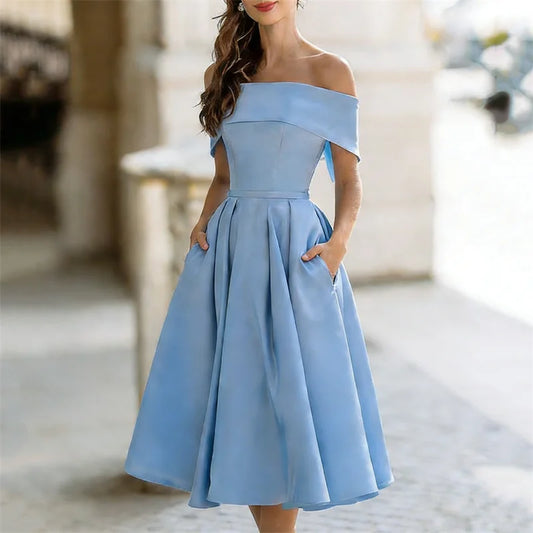 Cardydony Classy Off Shoulderwide Skirted Satin Maxi Dress