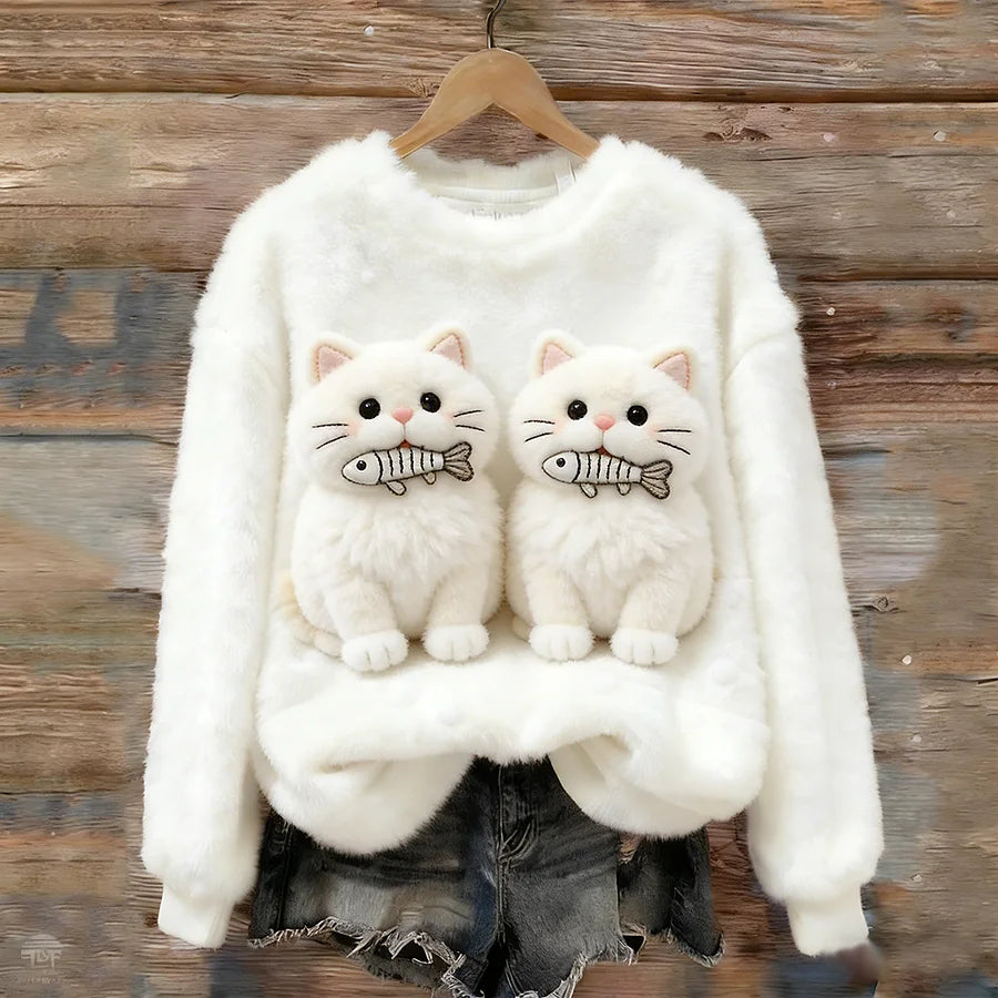 Cardydony Fish-carrying Cat Plush Turtleneck Sweater
