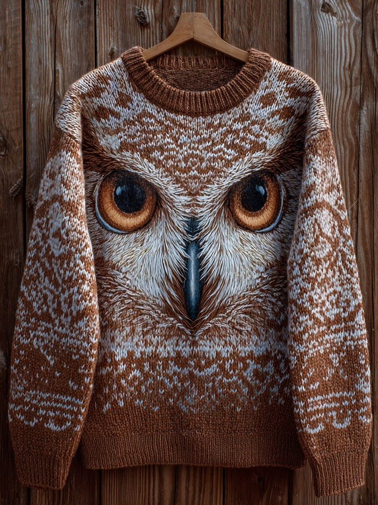 Cardydony Funny Forest Owl Pattern Comfy Knit Sweater