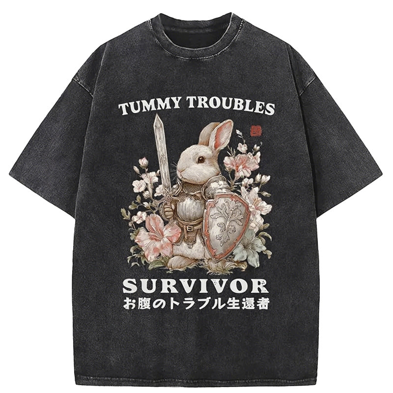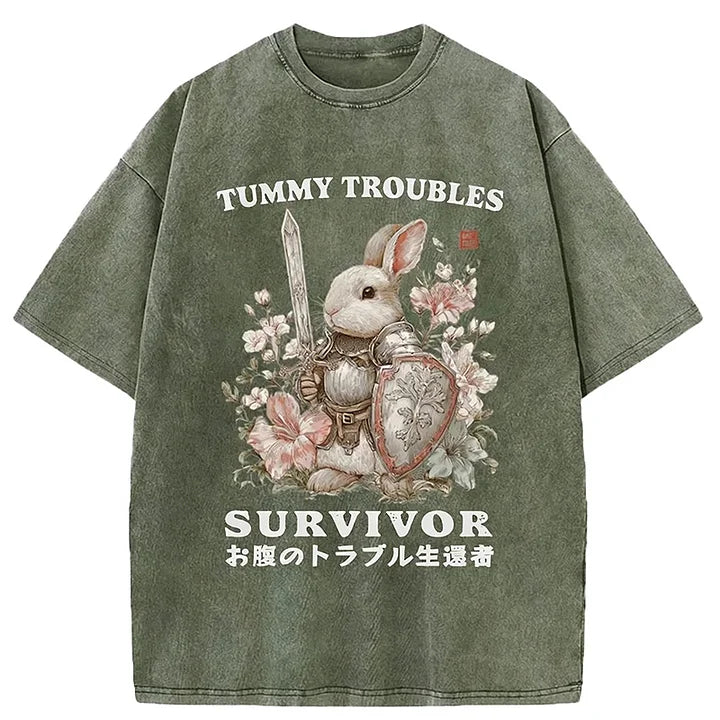 Cardydony Funny Rabbit:tummy Troubles Survivor Washed T-shirt